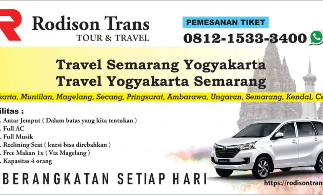 Apabila kamu sedang mencari travel dari Semarang ke Jogja maka kamu bisa pesan di tempat kami saja. Mengapa harus kami, karena kami dari Rodison Trans merupakan jasa transportasi yang memang Selengkapnya